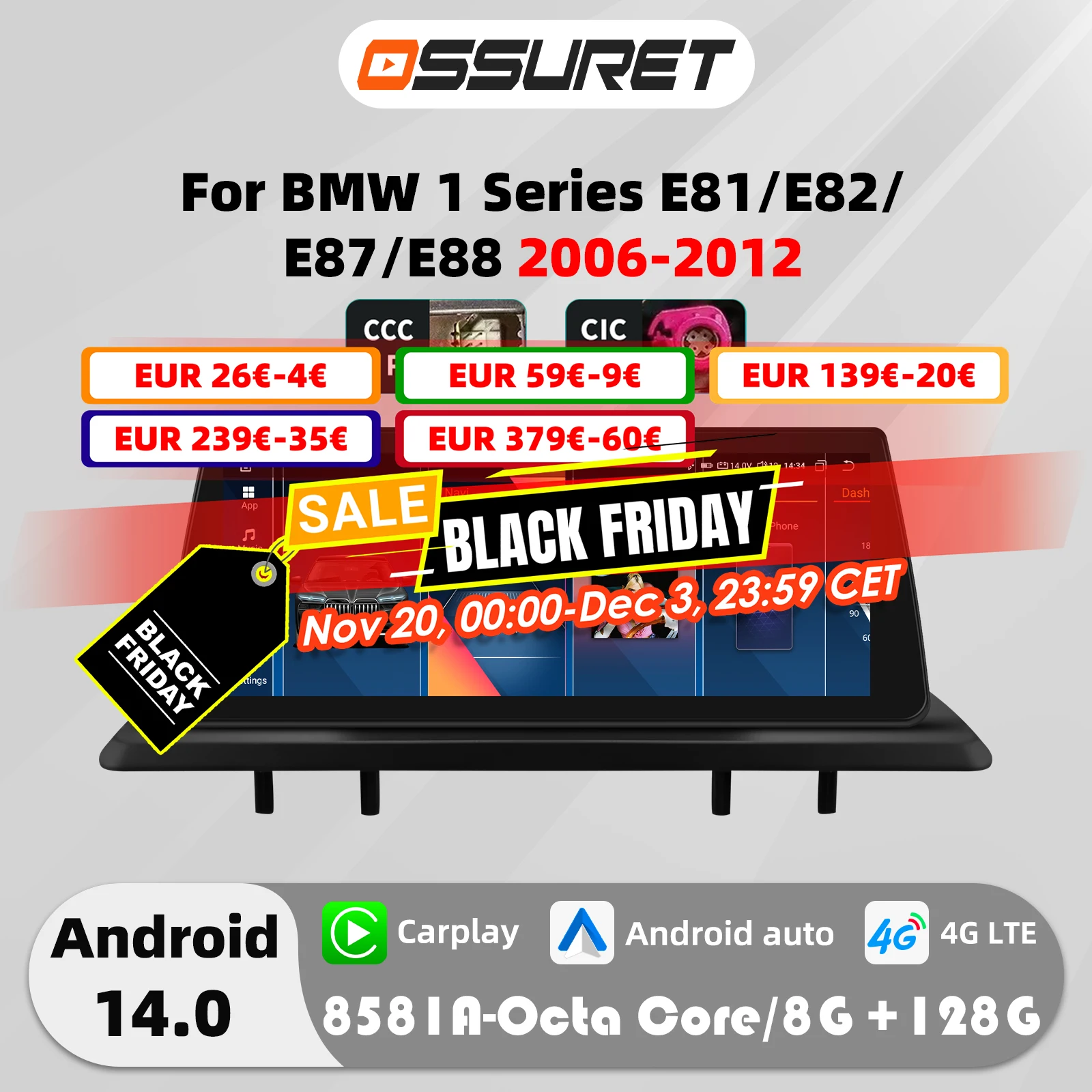10.25"Android 12 For BMW 1 Series E81 E82 E87 E88 CCC CIC Autoradio multimedia player 2din DSP Carplay 7862 Head Unit 4G Screen $307.46