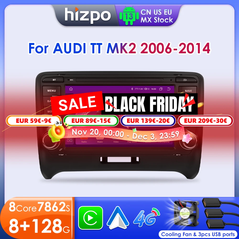 Hizpo 2 Din Android 13 Car Radio For Audi TT MK2 8J 2006-2014 Multimedia Stereo GPS Navi Head Unit Carplay Intelligent Systems $86.57