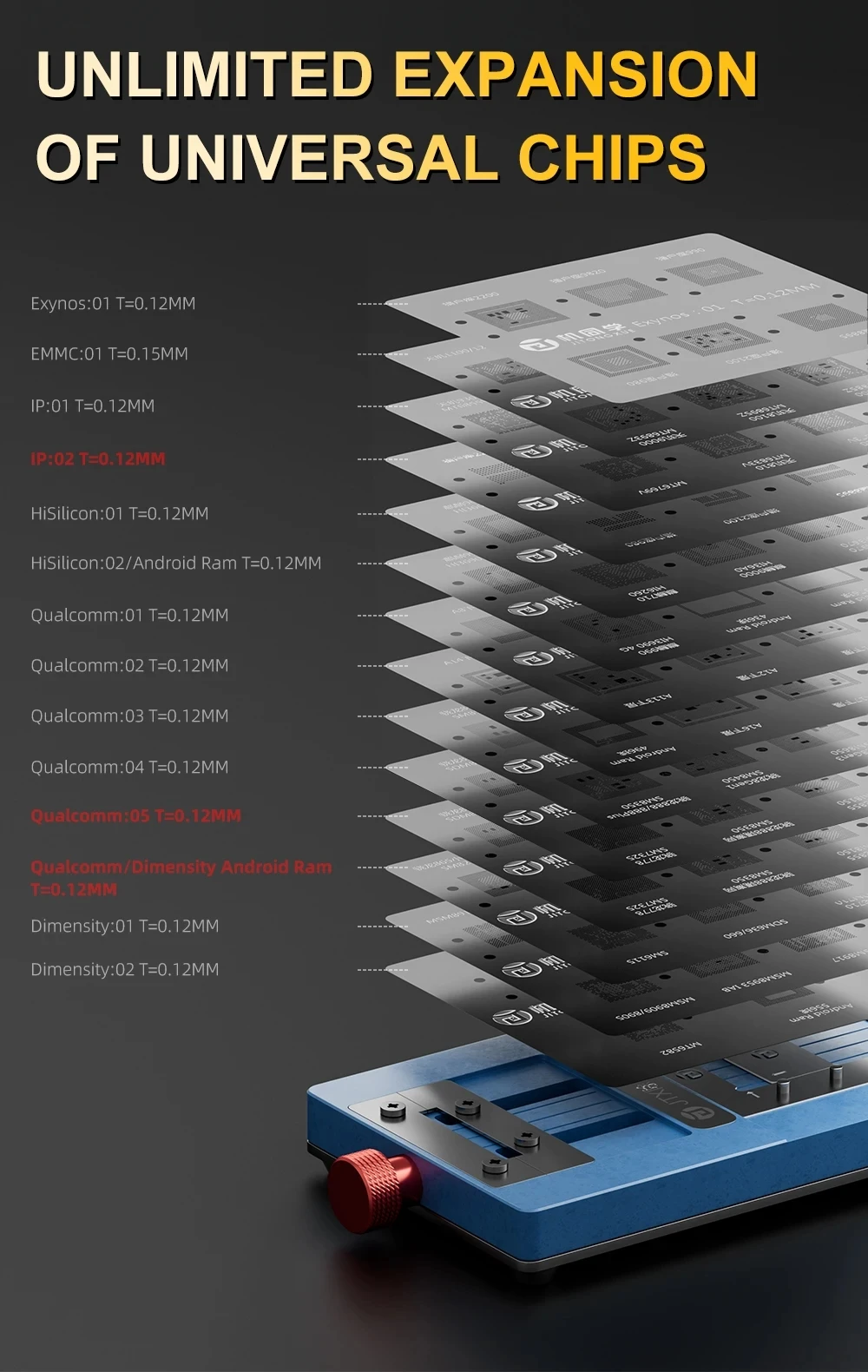 JTX T4 Pro Chip Glue Removal/Reballing Platform For iPhone Android Phone CPU EMMC IC Repair Clamp With 14Pcs BGA Stencil $22.80