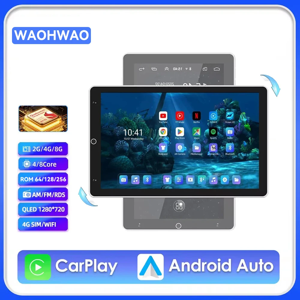 Universal Double 2Din 10.1"Inch Carplay Auto Android 15 Multimedia Player Car Player Automatic Rotatable 90 Degree Car Radio $109.96