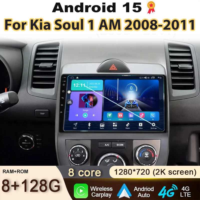Car Radio For Kia Soul 1 AM 2008-2011 Carplay Android 15 Auto GPS Navigation QLED Screen Play Multimedia Video GPS No 2din DVD $76.25