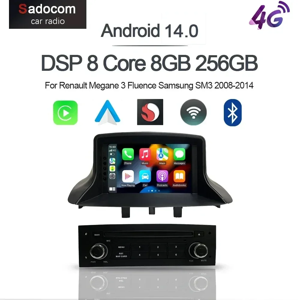 Carplay Android 13.0 8G+256G 8 Core GPS Car Player Wifi multimedia navigation For Renault Megane 3 Fluence Samsung SM3 2008-2014 $197.06