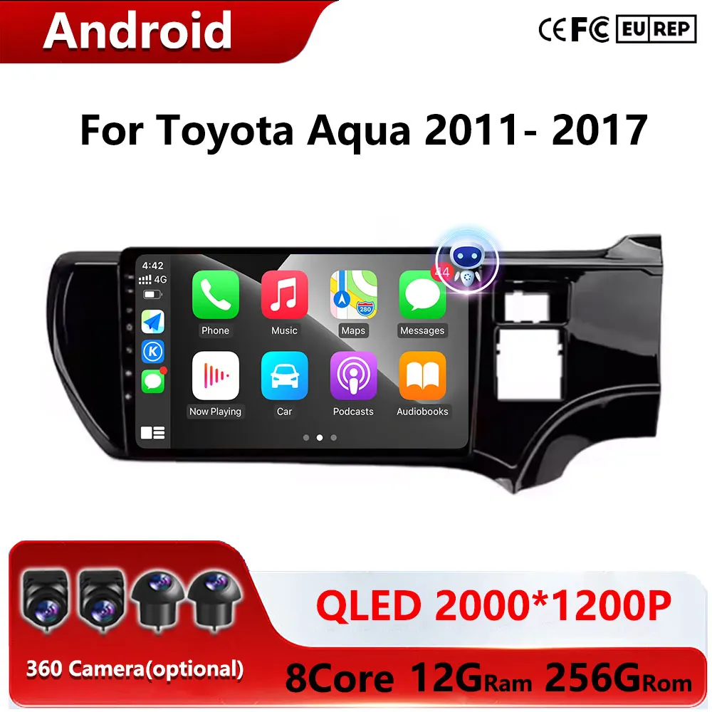 Android 15 For Toyota Aqua 2011- 2017 Car Radio Navigation Multimedia Player GPS WiFi+4G Bluetooth Video Carplay BT QLED Screen $79.24