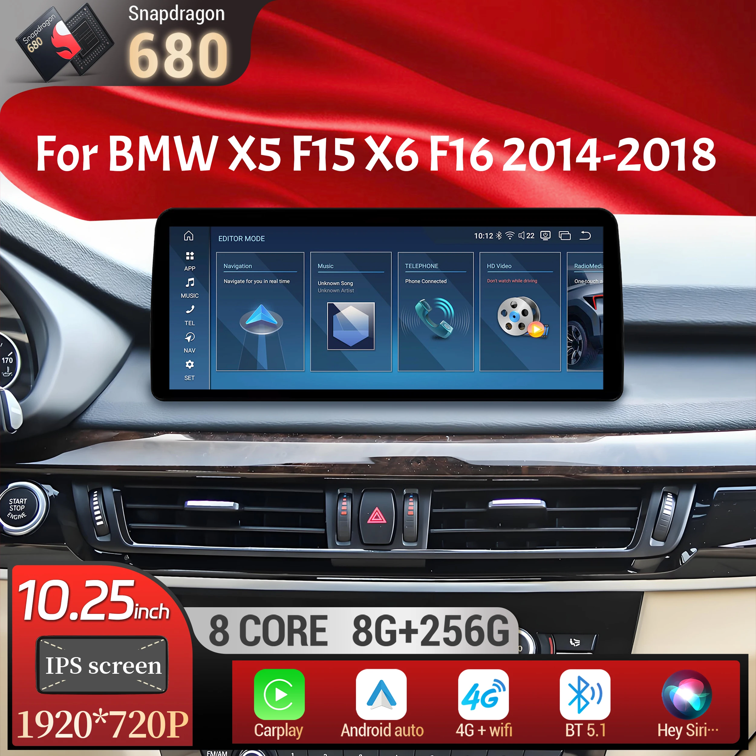10.25 inch Android 13 For BMW X5 F15 X6 F16 2014-2018 Car Radio Wireless Bluetooth Carplay Head Unit Snapdragon 680 Touch Screen $256.09