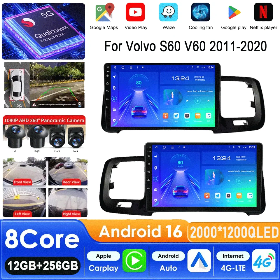 Android 16 Car Radio For Volvo S60 V60 2011-2020 RHD Multimedia Video Player Navigation Stereo GPS Octa Core 2 Din 360 Camera $119.49
