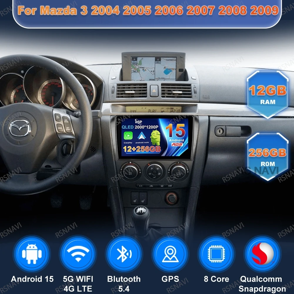 Android 15 Car Radio For Mazda 3 2004 2005 2006 2007 2008 2009 QLED 4G LTE 5G WIFI Autoradio Wireless Carplay Auto BT DSP Stereo $86.13