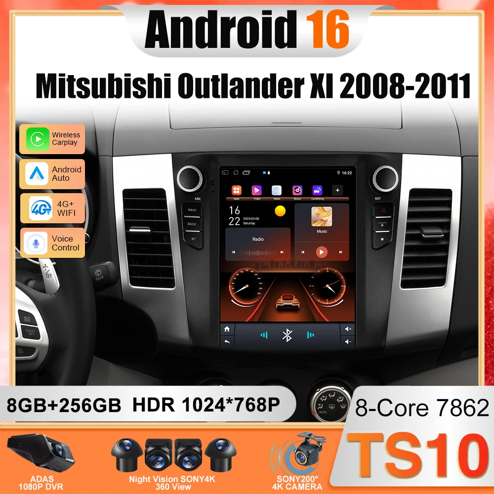 9.7" Android 16 For Mitsubishi Outlander Xl 2 2008-2011 Car Radio Multimedia Player Stereo Navigation GPS Carplay 4G HDR Screen $101.20