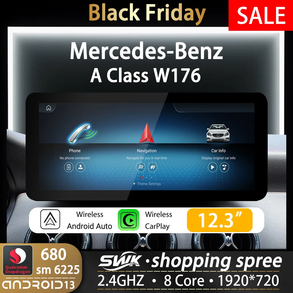 12.3inch For Mercedes Benz A Class W176 Qualcomm6225 Snapdragon680 Andorid13 Car Multiemedia Players CarPlay AUTO Video GPS $367.14