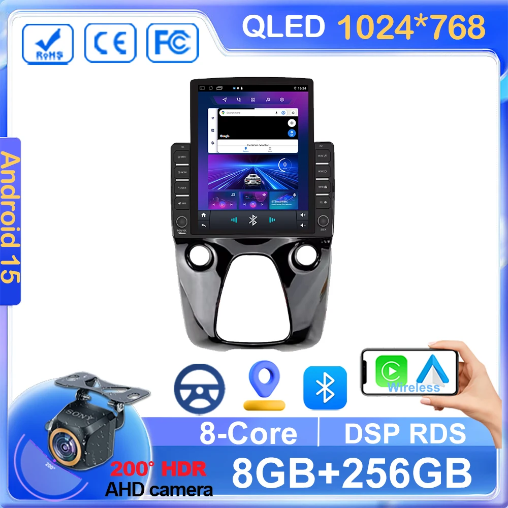 Android 15 Carplay Auto Car Radio For TOYOTA AYGO 2014-2021 Citroen C1 Peugeot 108 Multimedia Video Player GPS Navigation Stereo $92.62