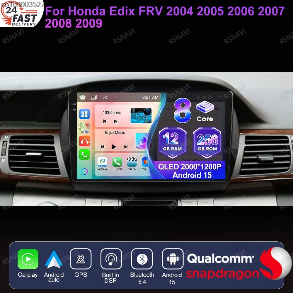 Android 15 For Honda Edix FRV 2004 - 2007 2008 2009 RDS DVD Qualcomm 8 Core Navigation BT IPS Autoradio Snapdragon QLED 2DIN DSP $130.82