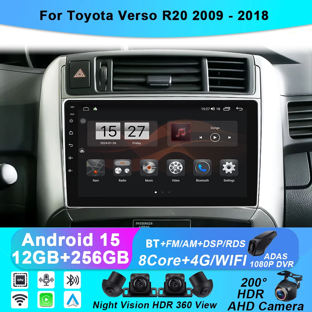 Car Radio For Toyota Verso R20 2009 - 2018 Carplay Android Auto GPS Stereo Navigation Multimedia Video Player Head Unit No 2din $72.96