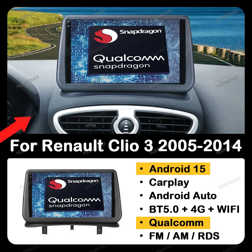 Android 15 Car Radio For Renault Clio 3 2005 - 2014 Head Unit GPS NAVI 2DIN QLED 4G WIFI Multimedia Video Player Qualcomm BT $91.73