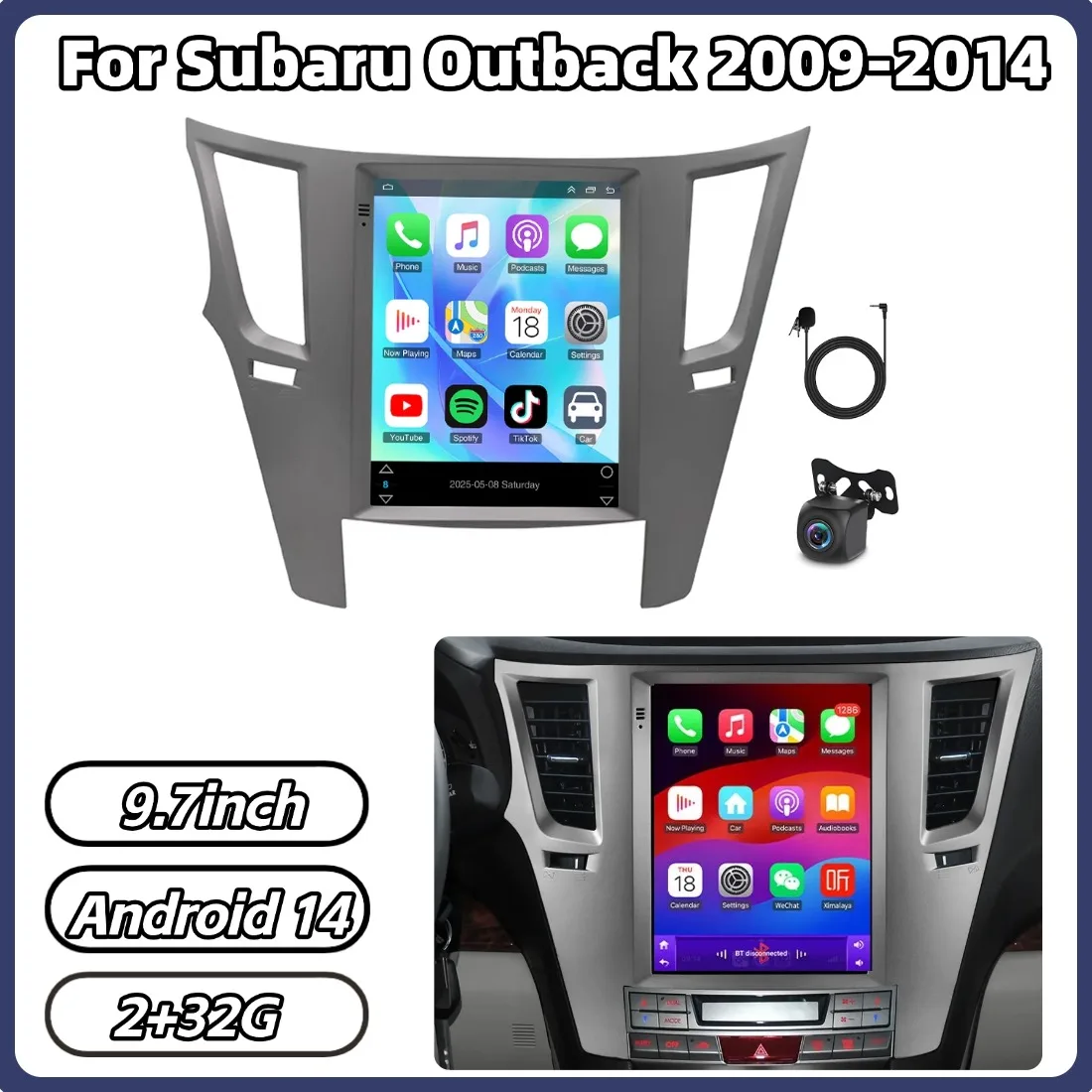 2+32G Android 14 Car Stereo For Subaru Outback 2009-2014 9.7in For Carplay Android Auto GPS Navigation Bluetooth Double Din $135.25