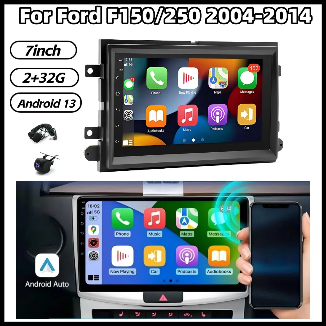 7inch 2+32G Car Stereo Radio GPS Navigation For Ford F150/250 2004-2014 Android 13 For Carplay Bluetooth WiFi FM/RDS SWC $103.44