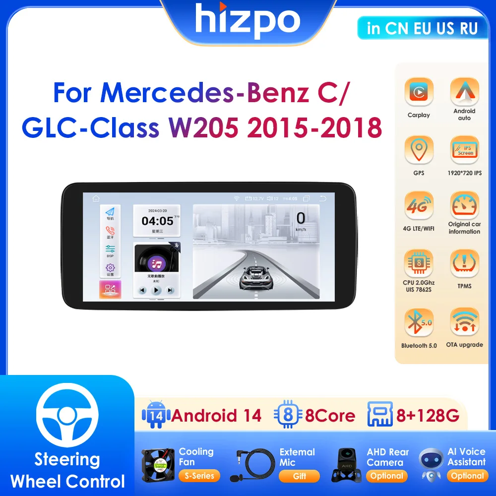 Android 14 Octa Core Smart Car Systems Support Carplay Android Auto For Mercedes-Benz C/ GLC-Class W205 (2015-2018) NTG 5.0 $178.75