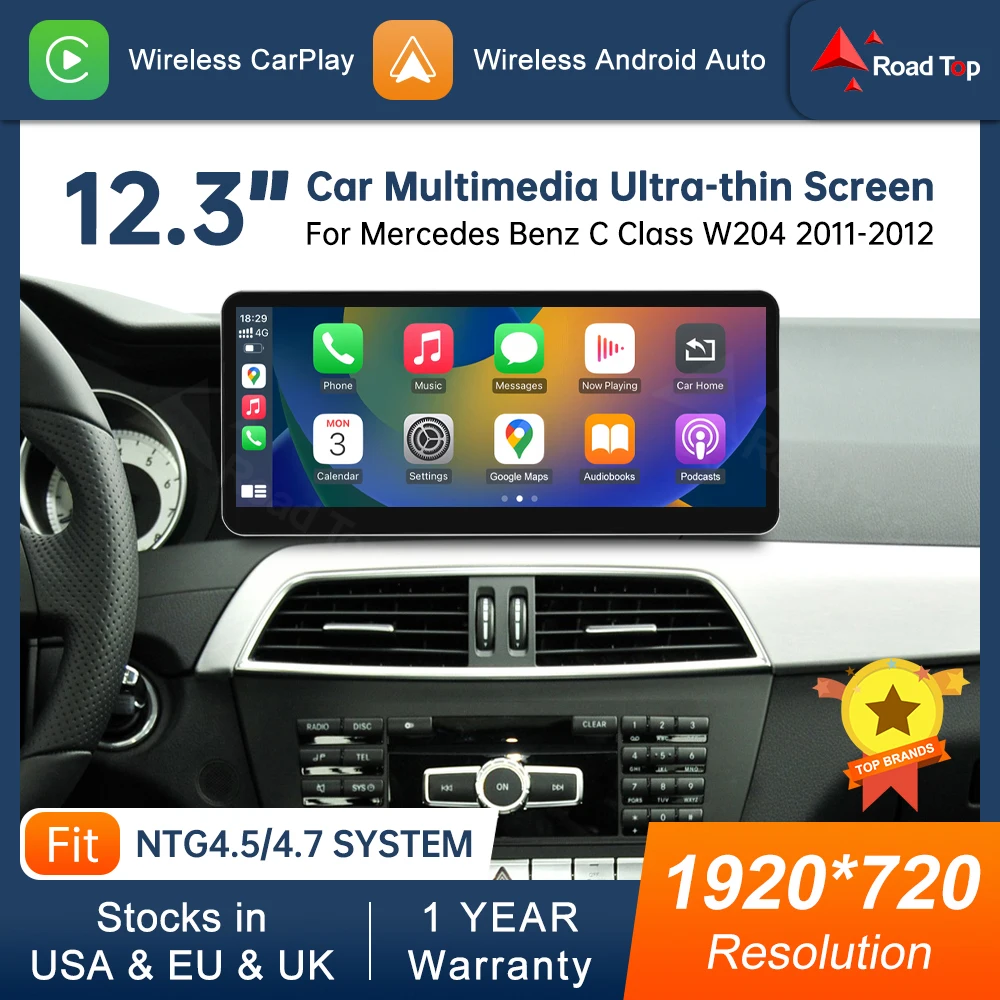 12.3 10.25'' Multimedia Display For Benz C Class W204 2011-2012 NTG4.5 LHD Touch Screen Wireless Carplay Navigation Android Auto $146.66