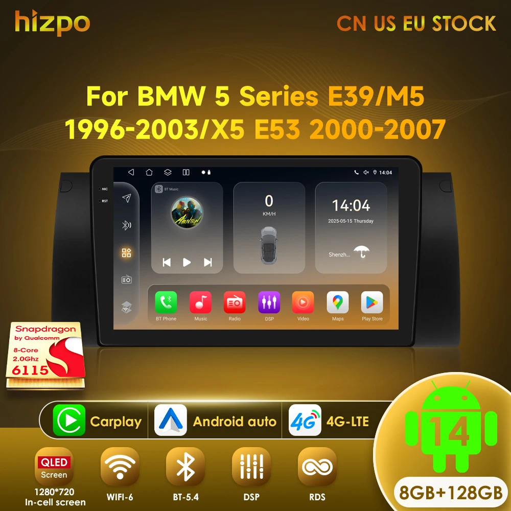 Hizpo 4G AI Voice 2 Din Android Auto Radio Multimedia Video Player for BMW 5 E39 1995 - 2003 E53 X5 M5 Navigation GPS Carplay $67.00