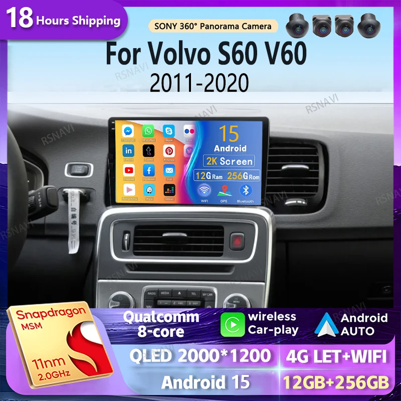 Android 15 Carplay Auto 2K Screen Car Radio Multimedia Player For Volvo S60 V60 2011 - 2020 2din Autoradio Stereo Head Unit $106.42