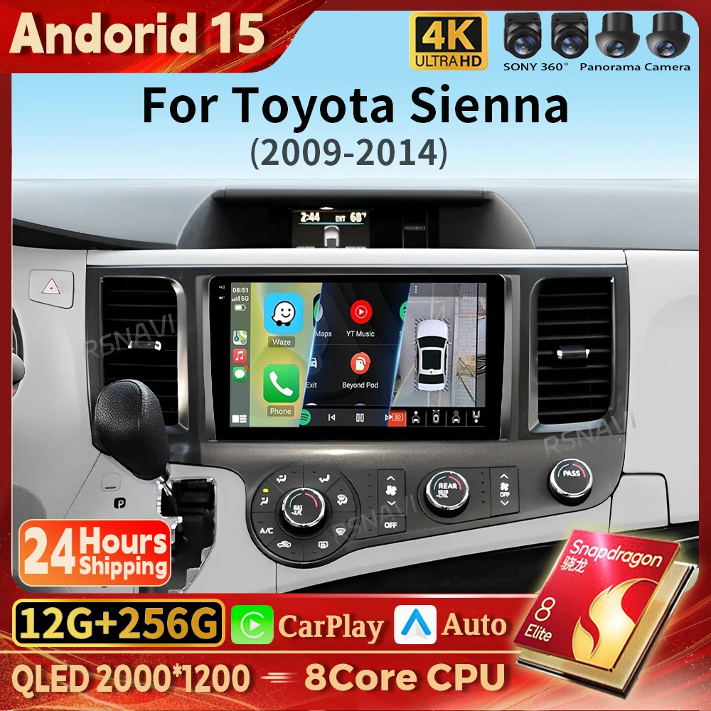Android 15 Carplay Auto BT GPS Car Radio Multimedia Video Player For Toyota Sienna 3 XL30 2010 - 2014 2 din Autoradio Snapdragon $96.55