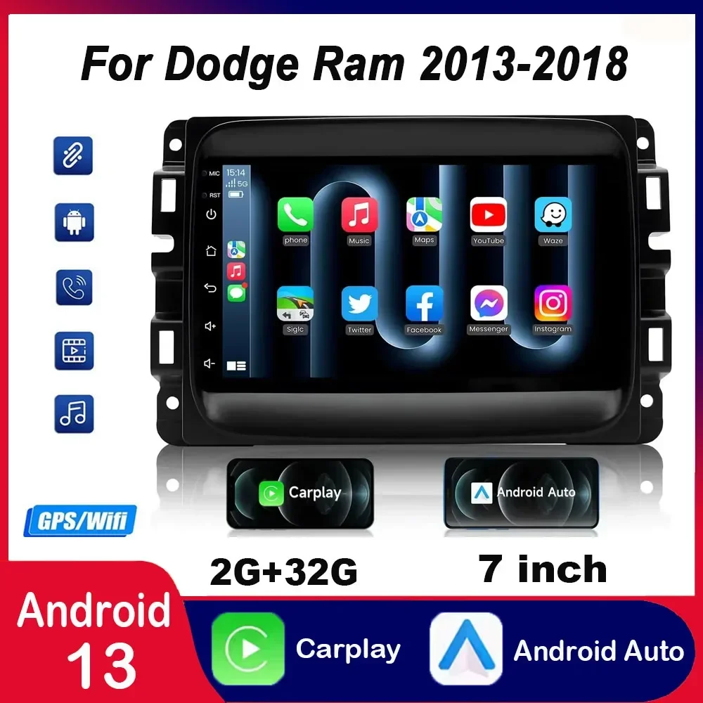 For 2013-2018 Dodge Ram: 7-inch Android 13 In-Car Navigation System Built-in with CarPlay + Android Auto / 2 + 32G $127.14