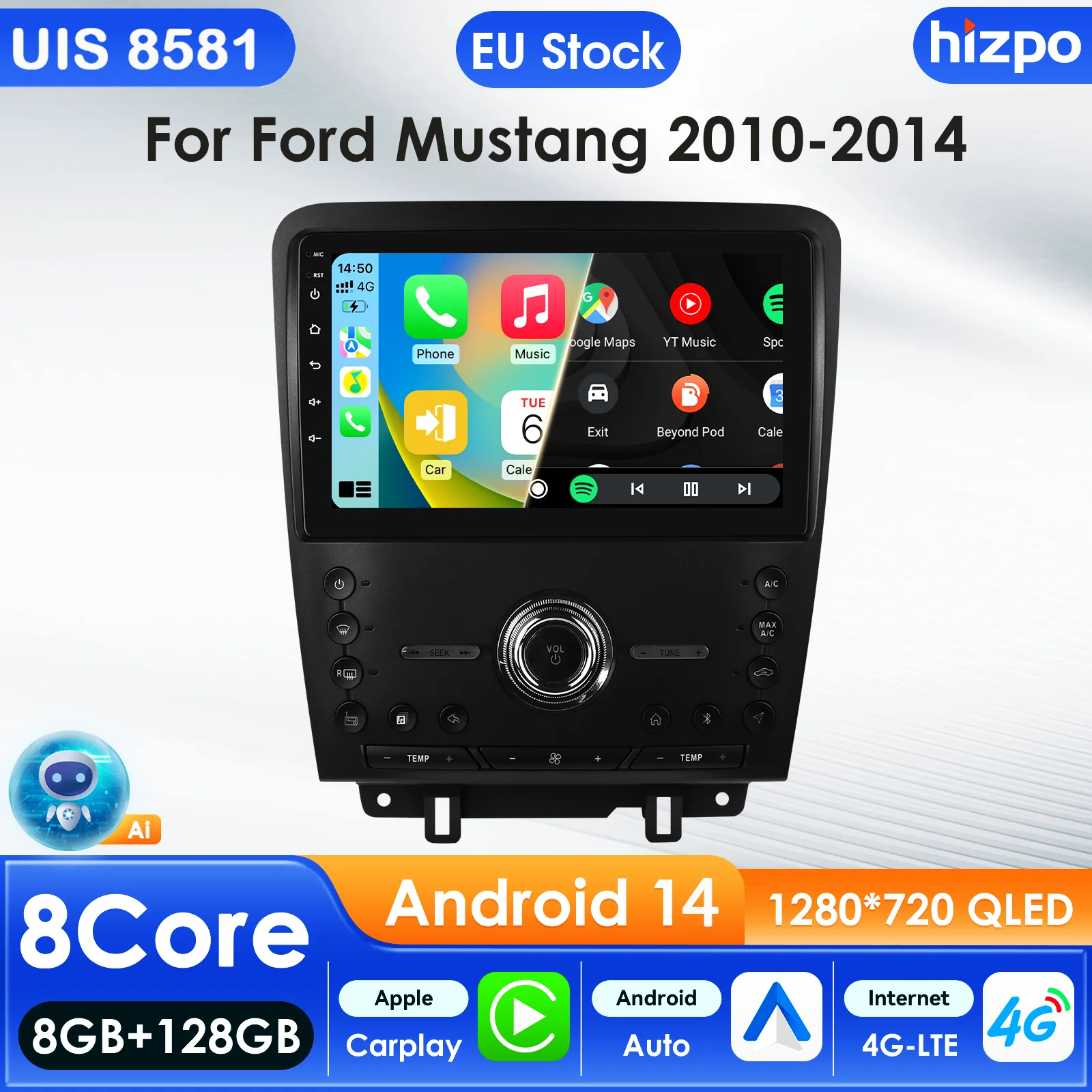Hizpo Car Radio for Manual Ford Mustang 2010-2014 Audio Multimedia Player CarPlay Android Auto GPS Bluetooth WIFI Autoradio AI $148.90