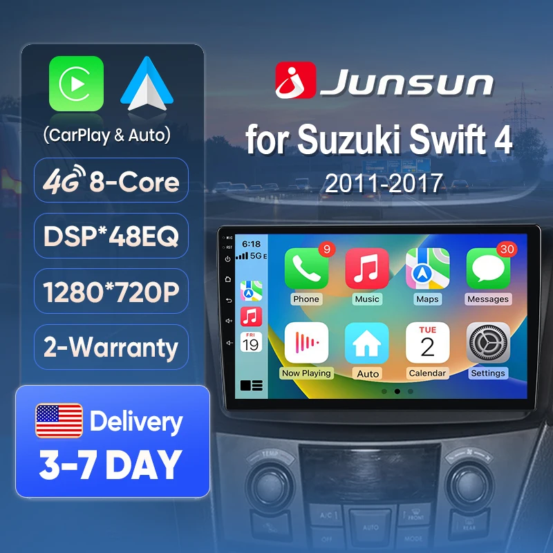 Junsun AI Voice Car Stereo Radio Wireless CarPlay For Apple Android Auto For Suzuki Swift 4 2011-2017 Touch Screen BT GPS FM DSP $99.85