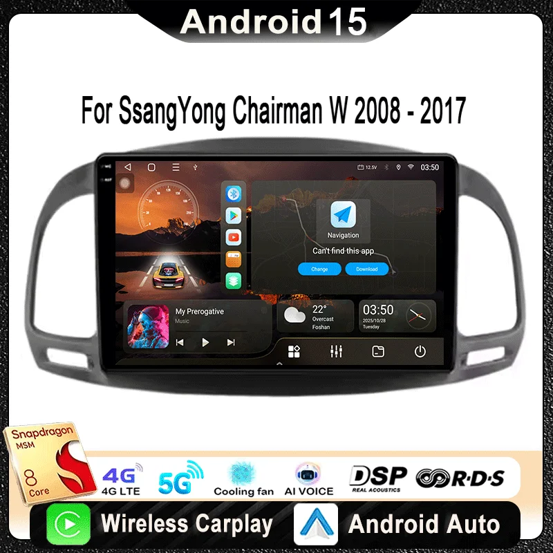 Android 15 Car Radio For SsangYong Chairman W 2008-2017 Multimedia Player Stereo Carplay GPS Navi Stereo 2din DVD 5G WIFI DSP $90.37