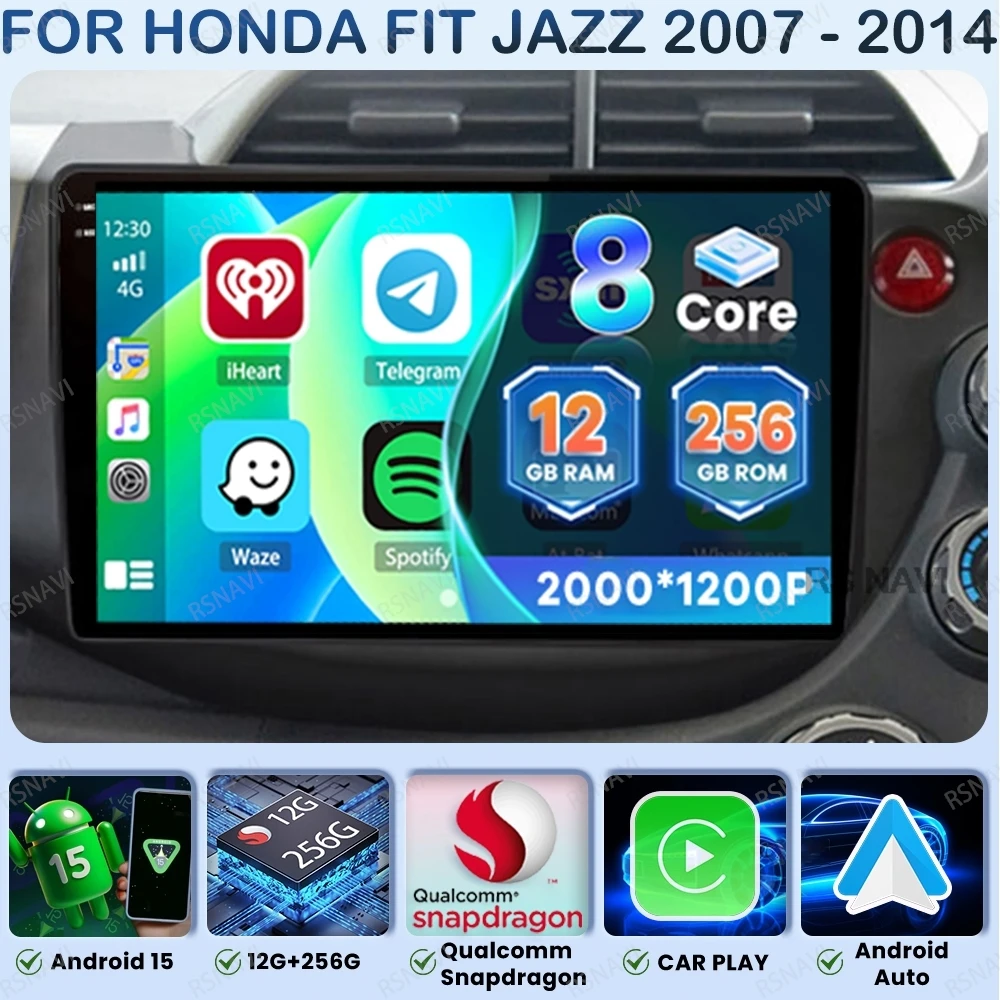 Android 15 Car Radio For Honda Fit Jazz 2007 - 2014 Wireless Carplay Auto DSP 4G LTE 5G WIFI Navigation DVD Autoradio GPS QLED $135.10