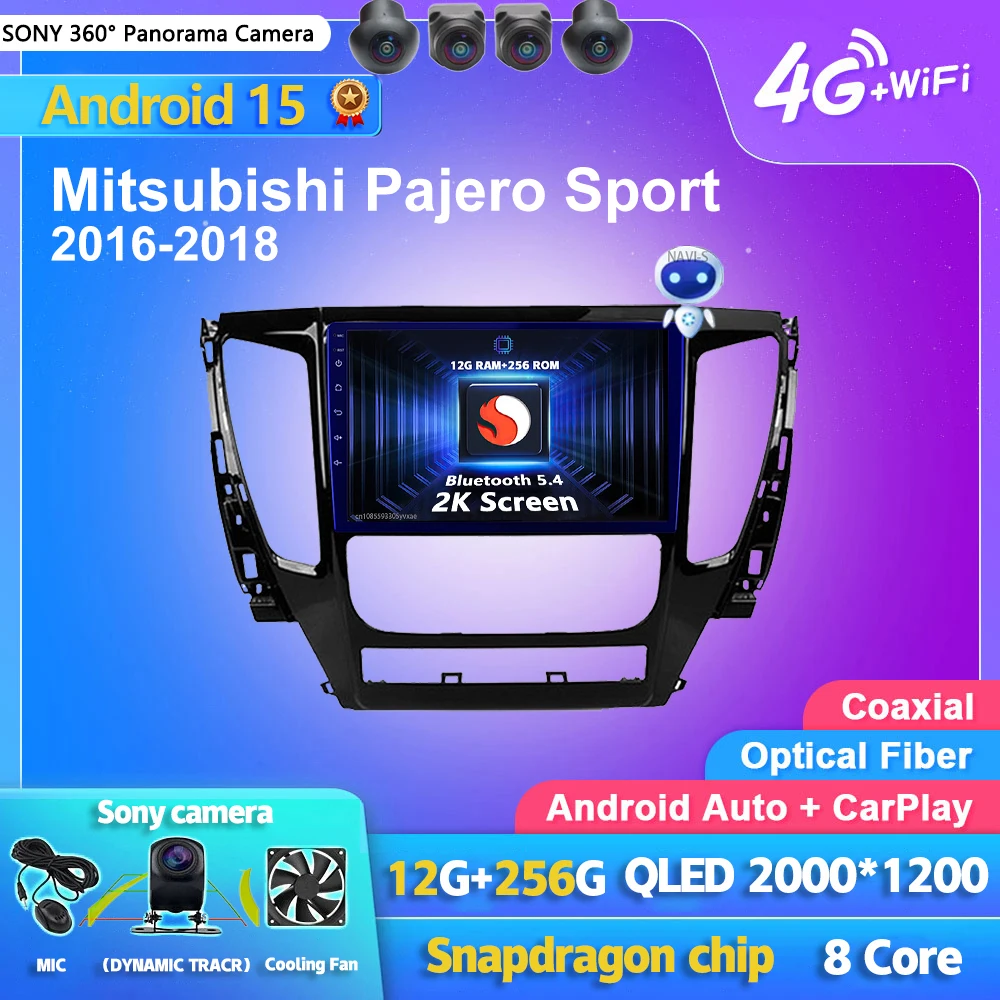 Qualcomm Android 15 Carplay Auto 2K Screen Car Radio Multimedia Player For Mitsubishi Pajero Sport 2016 - 2018 Autoradio Stereo $84.41