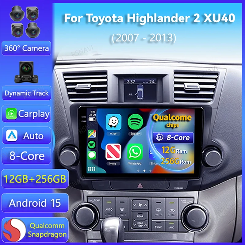 Android 15 Car Radio For Toyota Highlander 2 XU40 2007 2008 - 2013 Carplay Auto Navigation 2Din Player DSP Video Stereo WIFI+4G $83.60