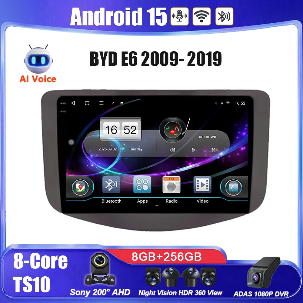 For BYD E6 2009- 2016 2017 2018 2019 Android 15 Car Player Stereo Multimedia GPS Auto Radio DVD Navigation Head Unit Dash Cam $79.39