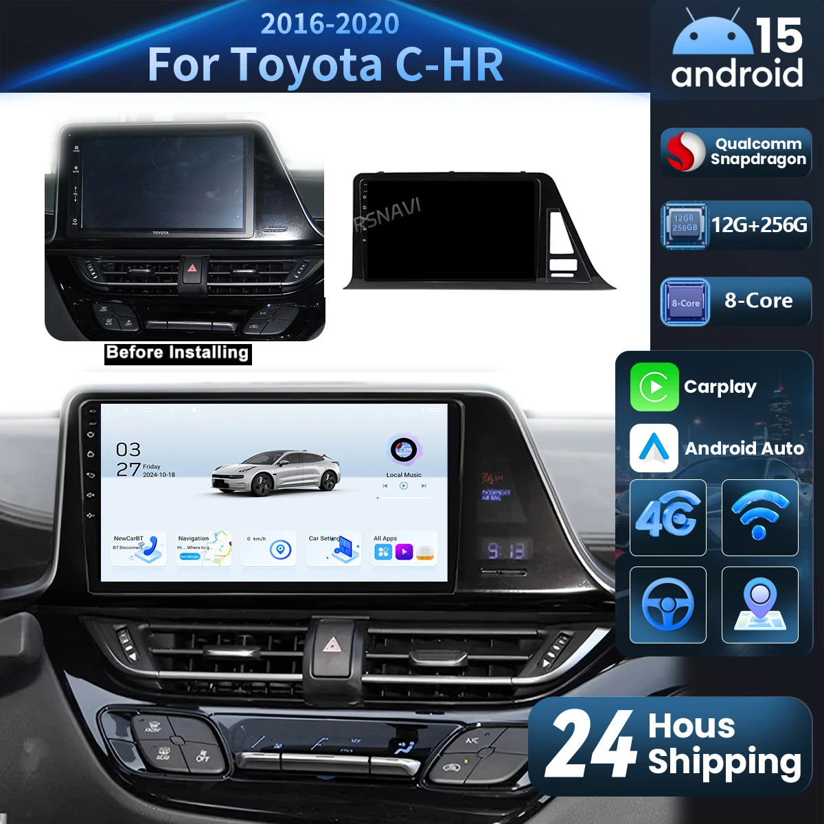 Android 15 Carplay Auto Car Radio Multimedia Player For Toyota CHR C-HR 2016 2017 2018 2019 2020 WIFI 4G GPS Qualcomm Snapdragon $101.44