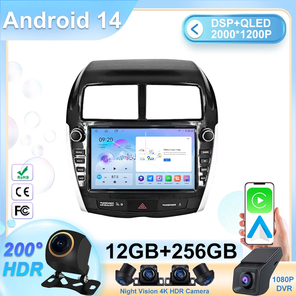 Android 14 Auto Radio Head Unit For Mitsubishi ASX 2010-2016 Android Auto Carplay No 2din DVD Multimedia Player GPS Navigation $129.92