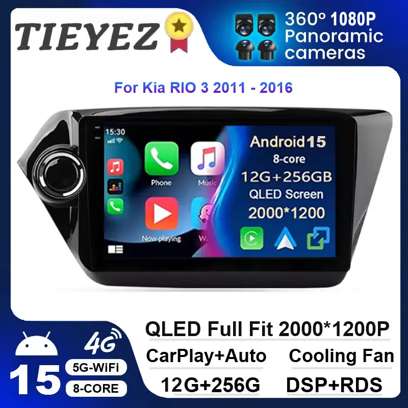 Android 15 Carplay Auto Car Radio for Kia RIO 3 2011-2016 Multimedia Video Player Navigation GPS Stereo Head Unit 2DIN WiFi 4G $90.78