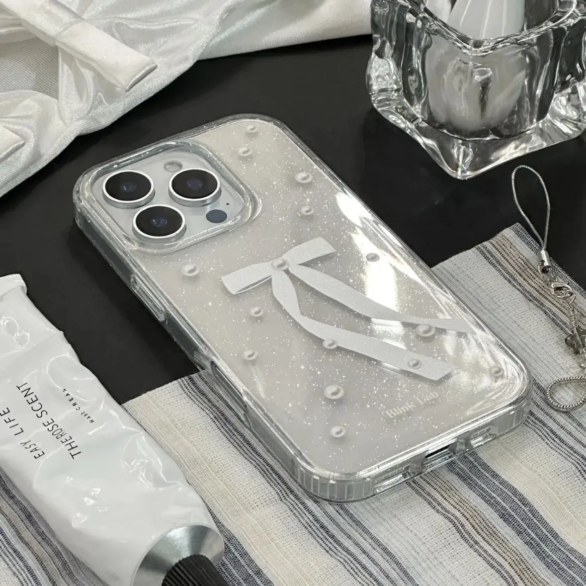 White Pearl Bow Glitter Pink Phone Case For iPhone 17 AIR 16 15 14 13 12 11 XR PRO XS MAX 7 8 PLUS MINI Anti Drop Simple Cover $2.31