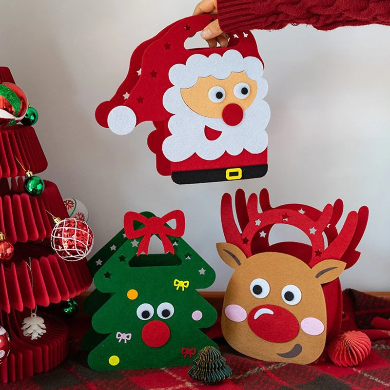 Kids' Christmas Candy Bag - Reusable Felt Apple Pouch for Gift Exchange, Handheld Treat Bag for Parties $14.45