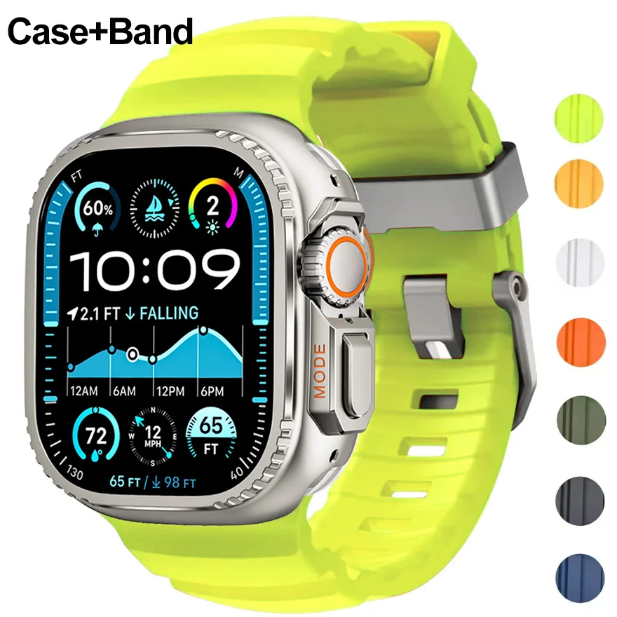 Metal Case+Silicone Strap for Apple Watch Ultra 2 49mm Series 10 46mm 44 45mm High Quality Metal Cover for Iwatch 10 9 8 7 6 5 4 $13.47