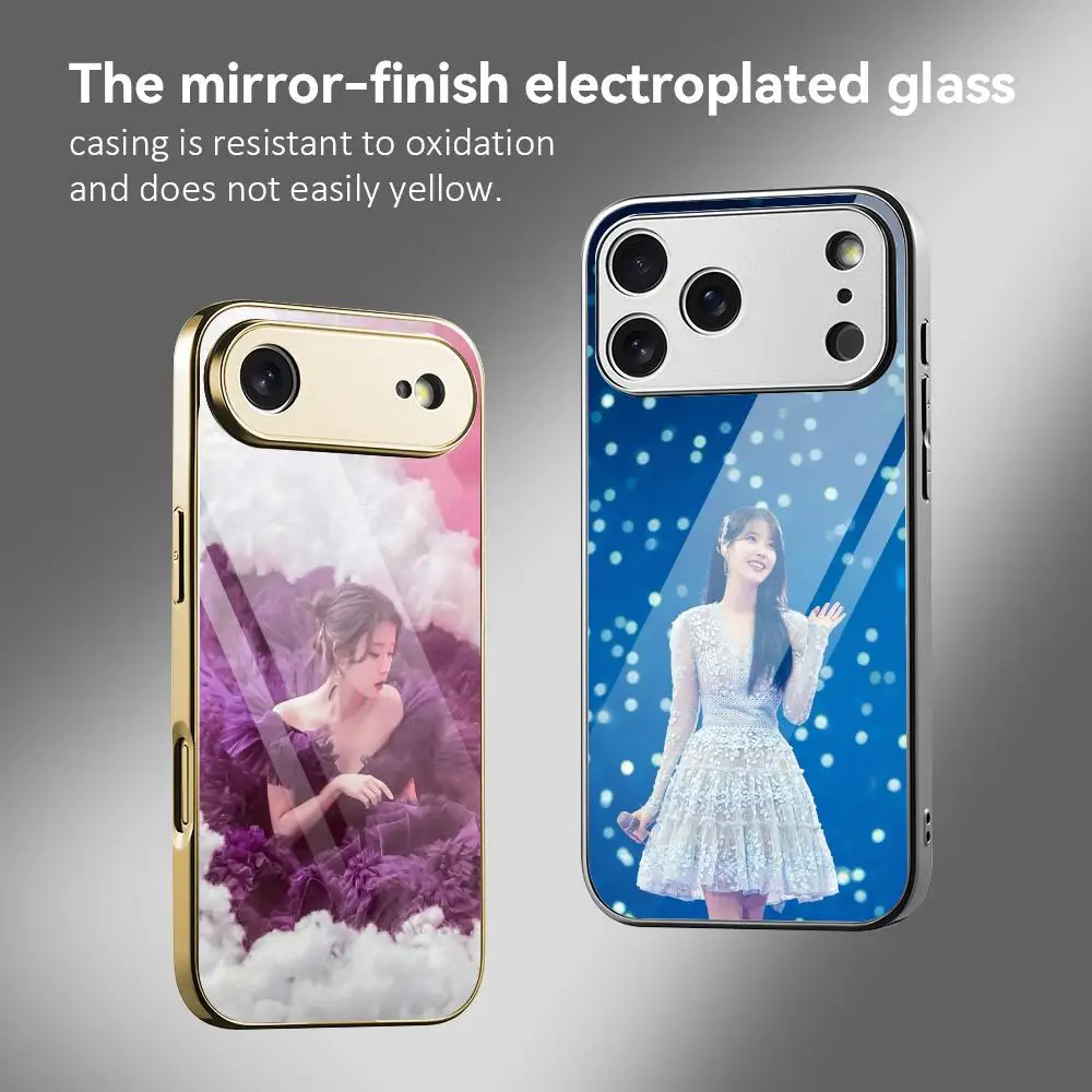 Lee Ji Eun IU Singer Phone Case For IPhone 17 16 15 14 13 12 Pro Max Plus Electroplated Metal Bumper Shockproof Case $5.44