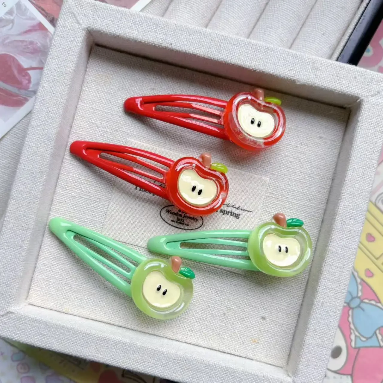 4pcs Cute Apple Simulated Fruit Hair Clips for Girls Sweet Side Hairpins Broken Hair Accessory BB Clip Ins Headwear 2025 $9.34
