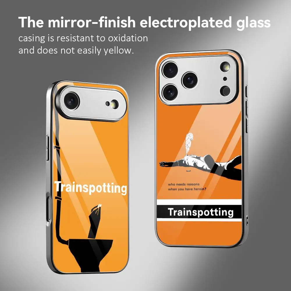 Cartoon T-Trainspotting Phone Case For IPhone 12–17 Series Electroplated Metal Bumper With Tempered Glass Back $6.61