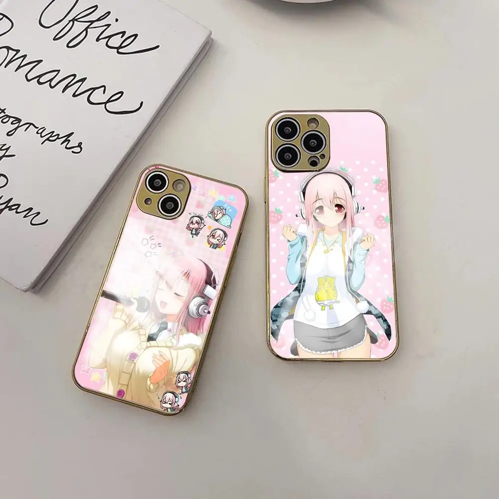 Cute Anime Super S-Sonico Phone Case For IPhone 17 16 15 14 13 12 Pro Max Plus Electroplated Metal Bumper Shockproof Case $6.45