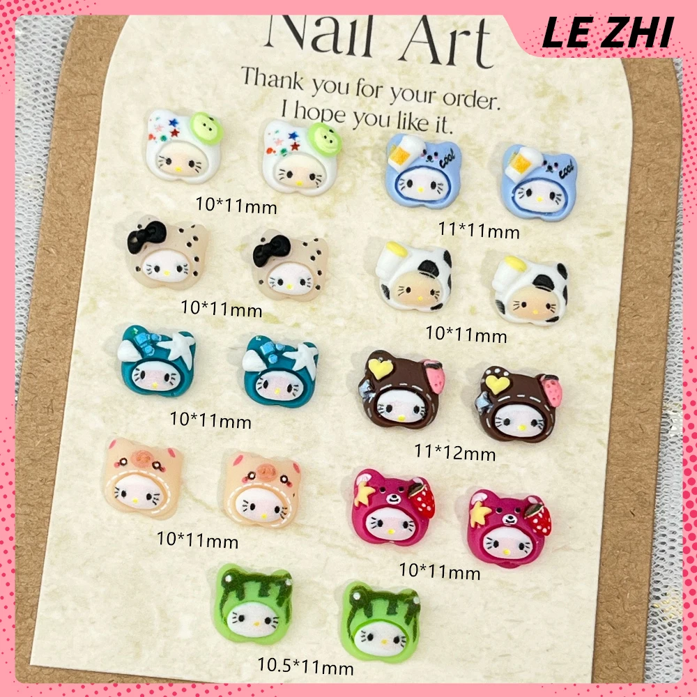 20Pcs Cute Hello Kitty Hat Cross Dressing Nail Accessories Cartoon Pig Bear Apple Strawberry Watermelon Milk Resin Nail Decora $1.17