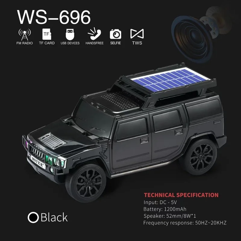 WS-696 New Solar Energy Car Shaped Wieless Bluetooth Speaker with TF USB FM HandsfreeTWS Selfie Rechargeable Battery Boombox $27.89