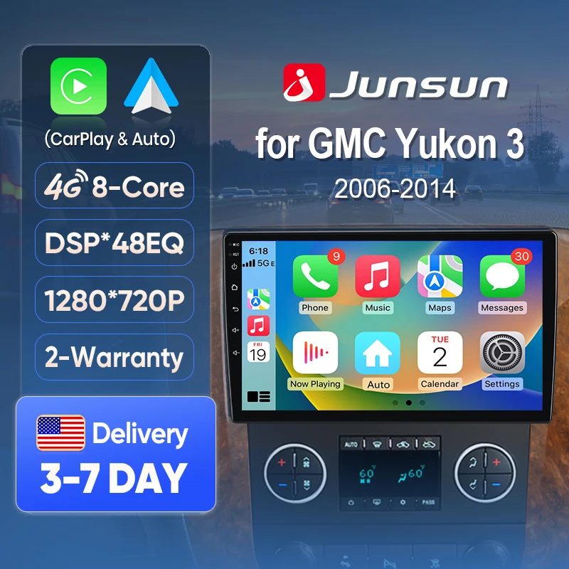 Junsun AI Voice Car Stereo Radio Wireless CarPlay For Apple Android Auto For GMC Yukon Chevrolet Tahoe Suburban 2006-2014 BT GPS $117.69
