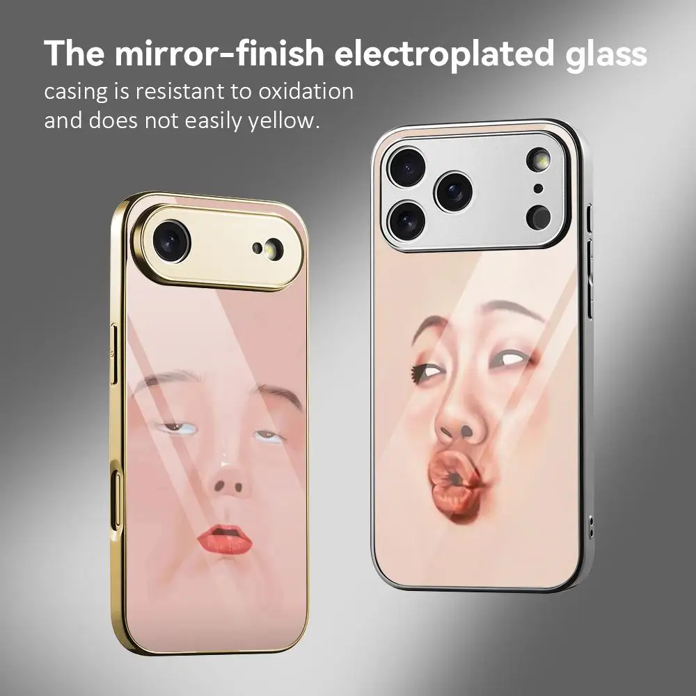Funny Cartoon Face Phone Case For IPhone 17 16 15 14 13 12 Pro Max Plus Electroplated Metal Bumper Shockproof Case $5.44