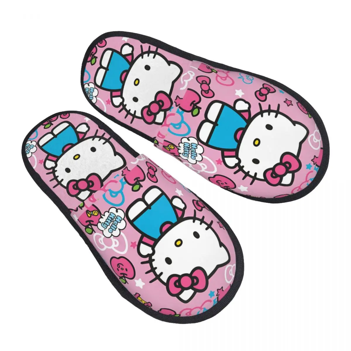 Winter Furry Slippers Hello Kitty Pink Apple Accessories Household Fur Slides Slippers Bedroom Soft Non-skid Slides $3.99