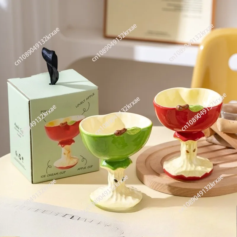 Apple goblet cute hand-painted three-dimensional dessert cup ice cream cup ceramic mug couple cup $13.94