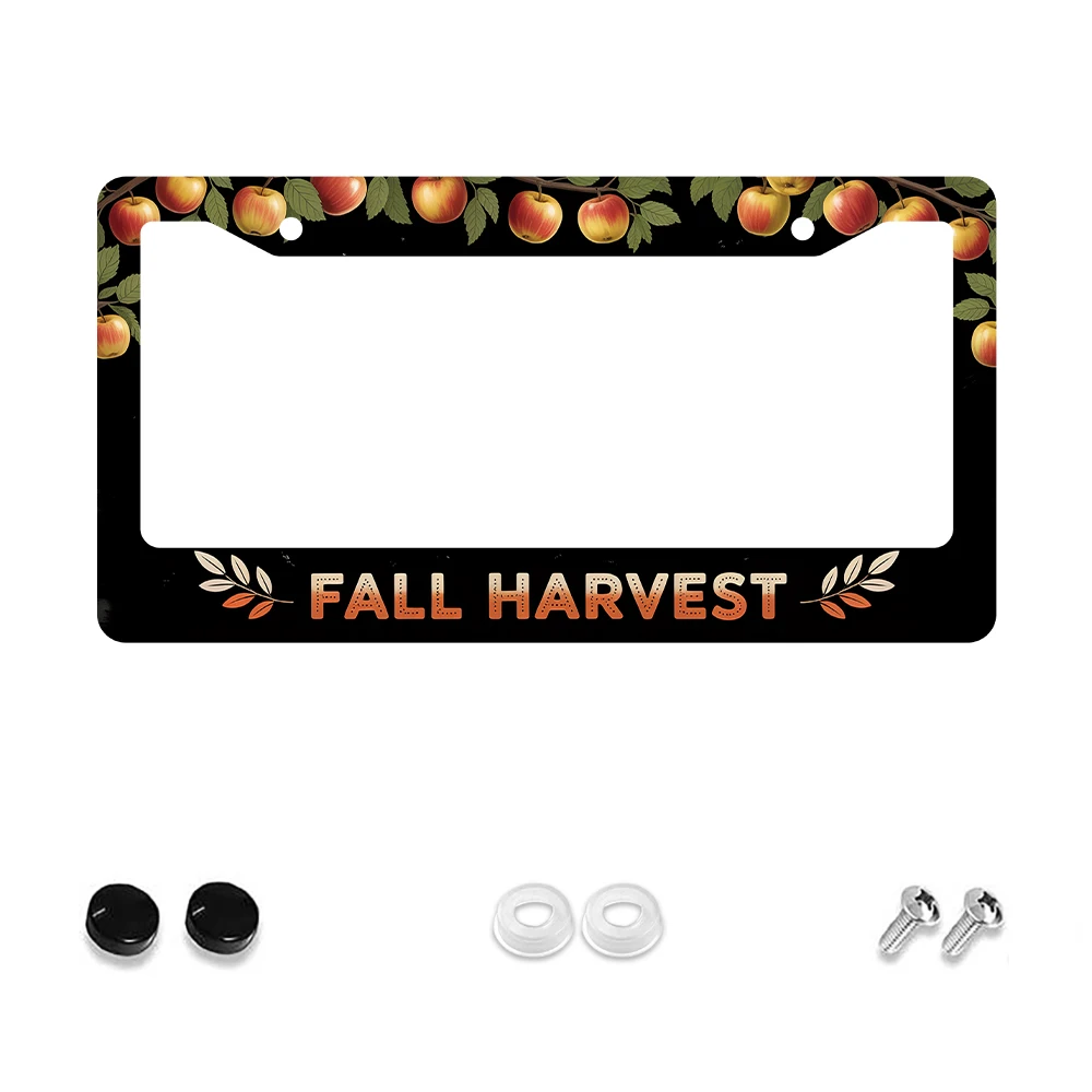 1pc Black Color Apple Pattern 2 Hole License Plate Frame Aluminum Material 6x12 Inches with Screw Set Retro Novelty Car Decorat $6.67