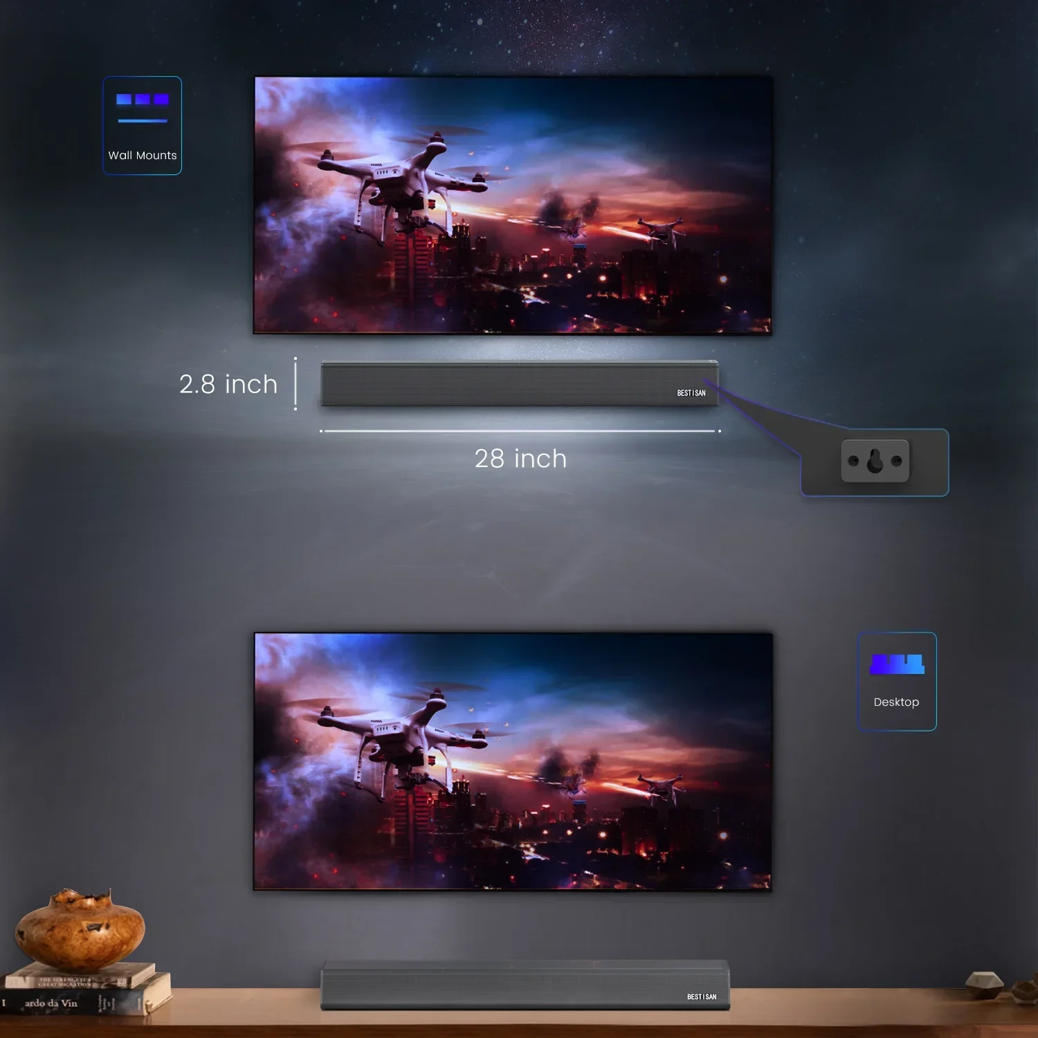 60W Bluetooth SoundBar for TV Deep Bass Soundbar TV Speaker Home Theater Surround Sound System HDMI/ USB/Optical/Aux Connection $128.74