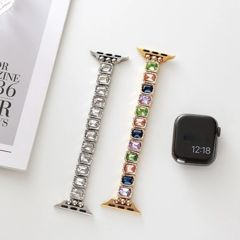Square Colorful Diamond Elastic Band for Apple Watch Strap 41mm 45 40 44 42 46 38 49mm Bracelet iWatch Series 11 10 9 8 7 6 5 4 $3.11